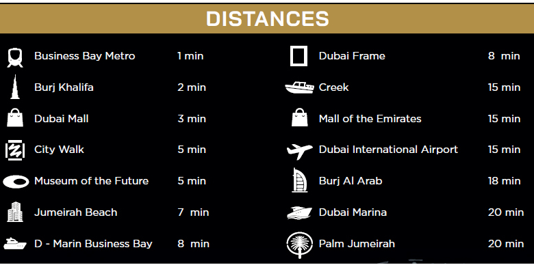– Just a two-minute walk from the Business Bay metro station.